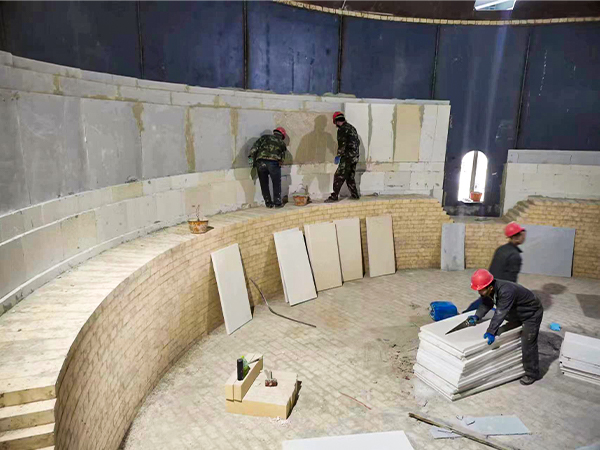 內蒙古電石爐耐火材料內襯施工現場
