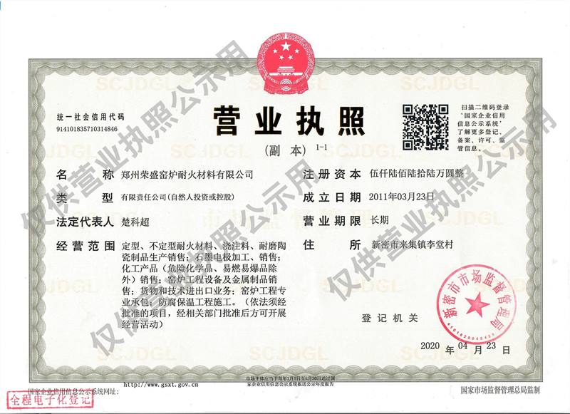 鄭州榮盛窯爐耐火材料有限公司營業(yè)執(zhí)照公示